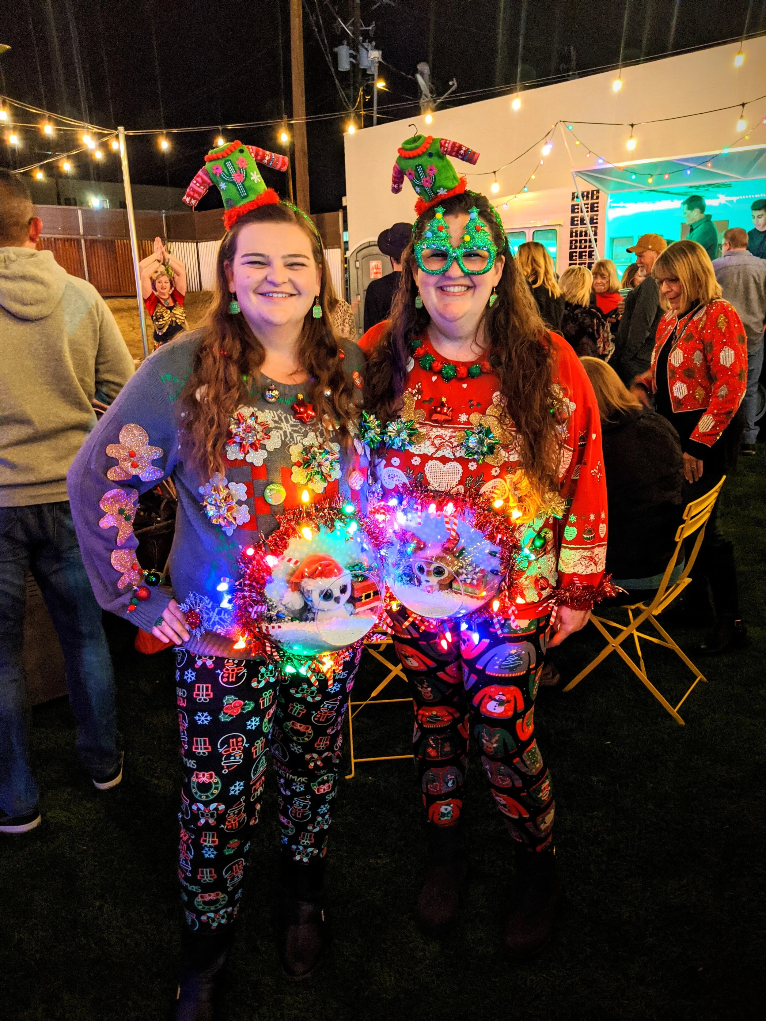 J: My favorite theme was the Shamrockin' night as St. Patrick's Day is my most favorite holiday but my favorite outfit by far was the ugly sweaters. We made these sweaters ourselves and even lit them up and I had so much fun wearing that with my sister and getting lots of laughs out of people.