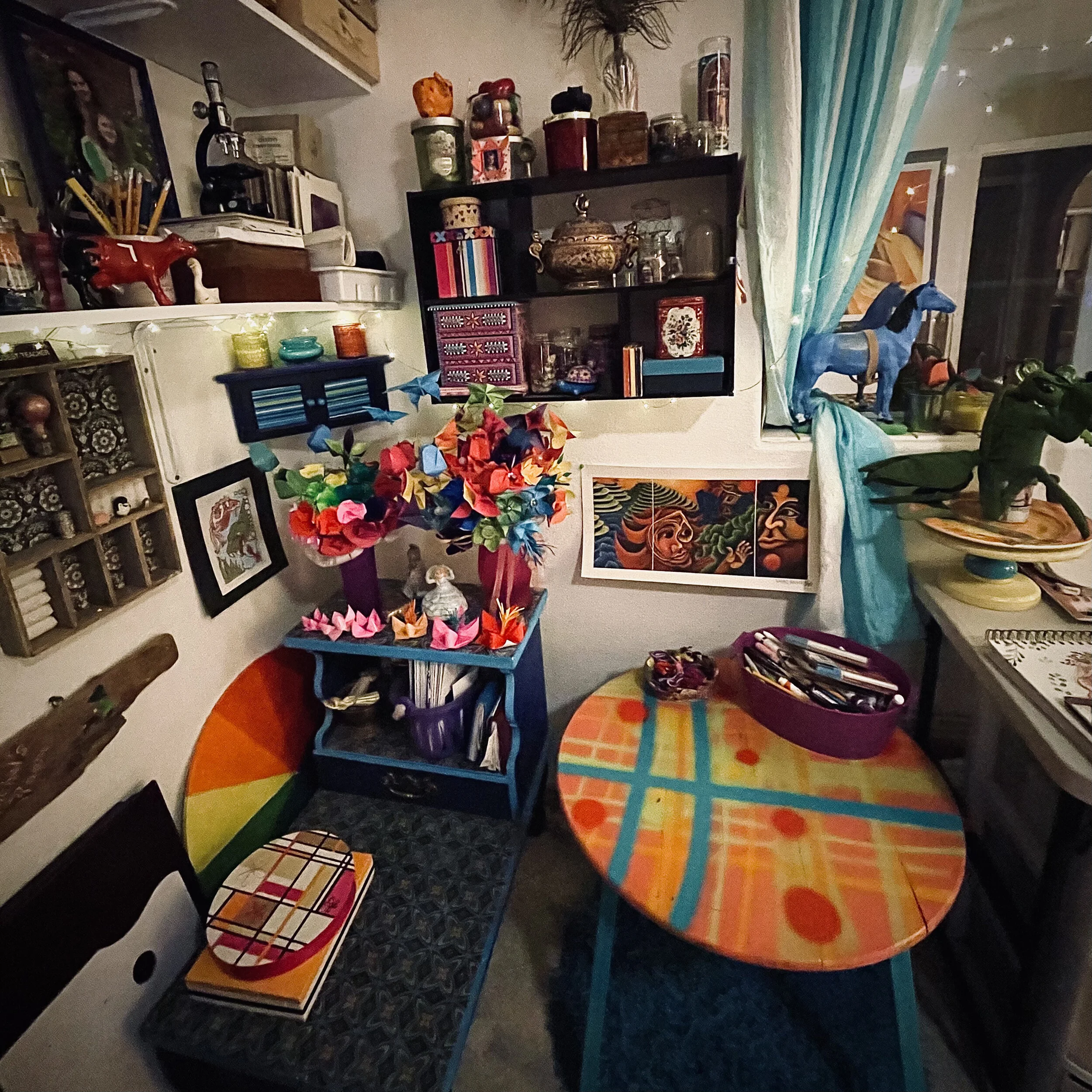 So I don't make a mess everywhere! It's a place where you can have all of your materials at arms reach and I like to decorate in a way that's inspiring for me. In my studio, it's important for me to have my favorite place so when I go there I can't help to be happy and be in the present moment. I think it's important for every artist – doesn't matter if you're a musician, an actor, a visual artist or dancer – to have a place where you can practice. Making things is a sacred act.
