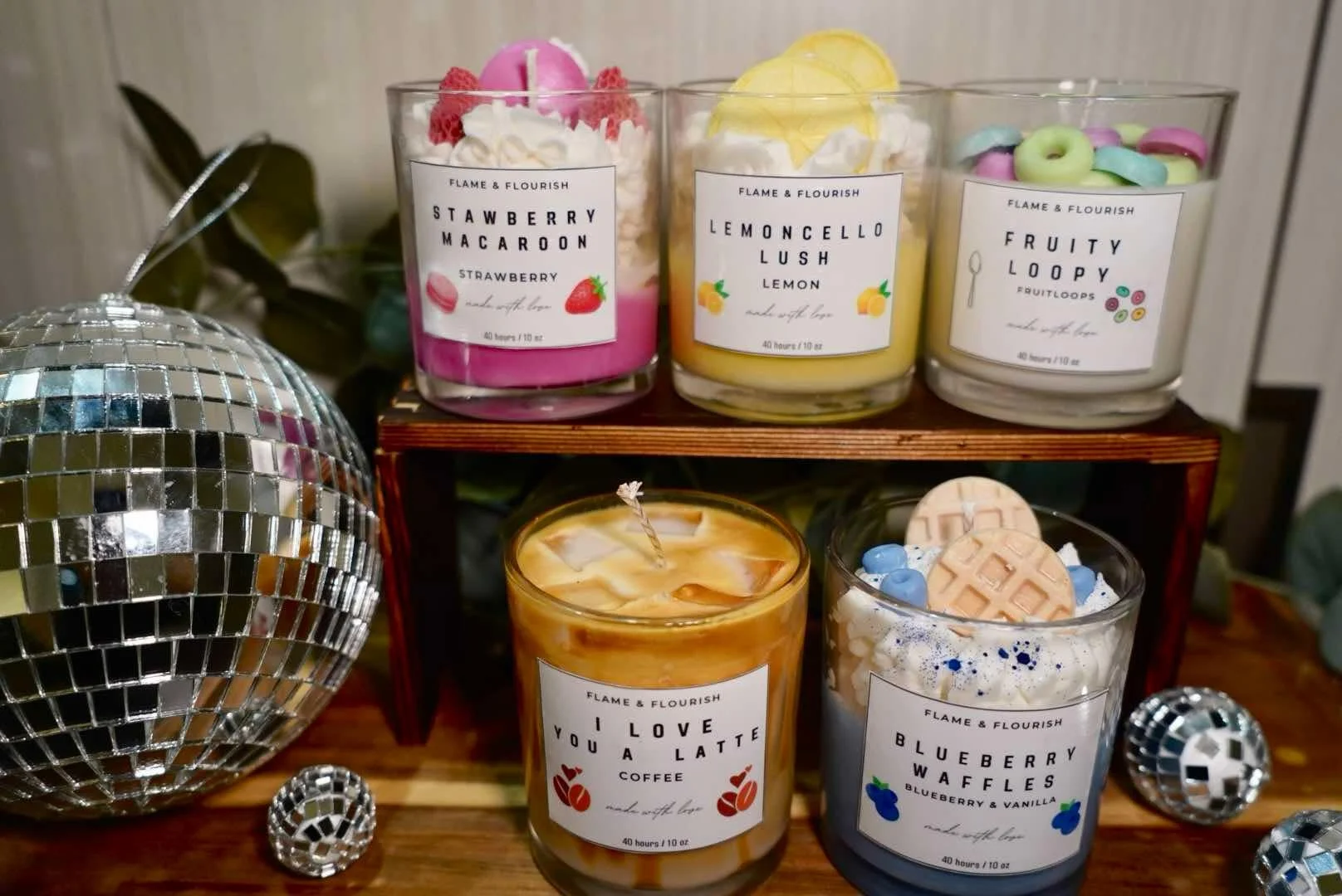 I create handcrafted candles under my brand, Flame & Flourish. Each candle is thoughtfully designed with unique scents, colors, and artistic molds to create an immersive experience beyond just fragrance.