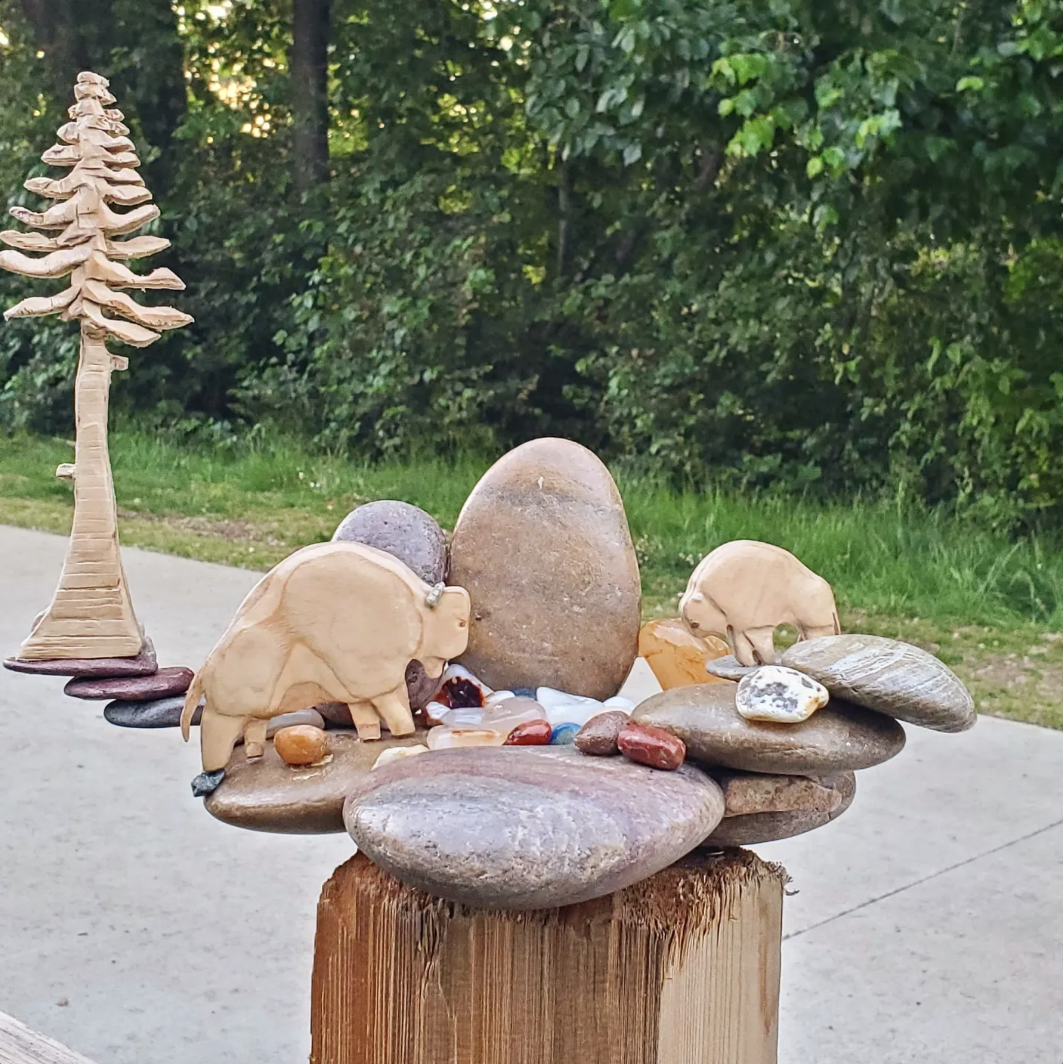 My art form has no easy definition; I carve tree portraits and landscapes into repurpuposed skateboard decks I also bond rocks and wood together to create sculptures.