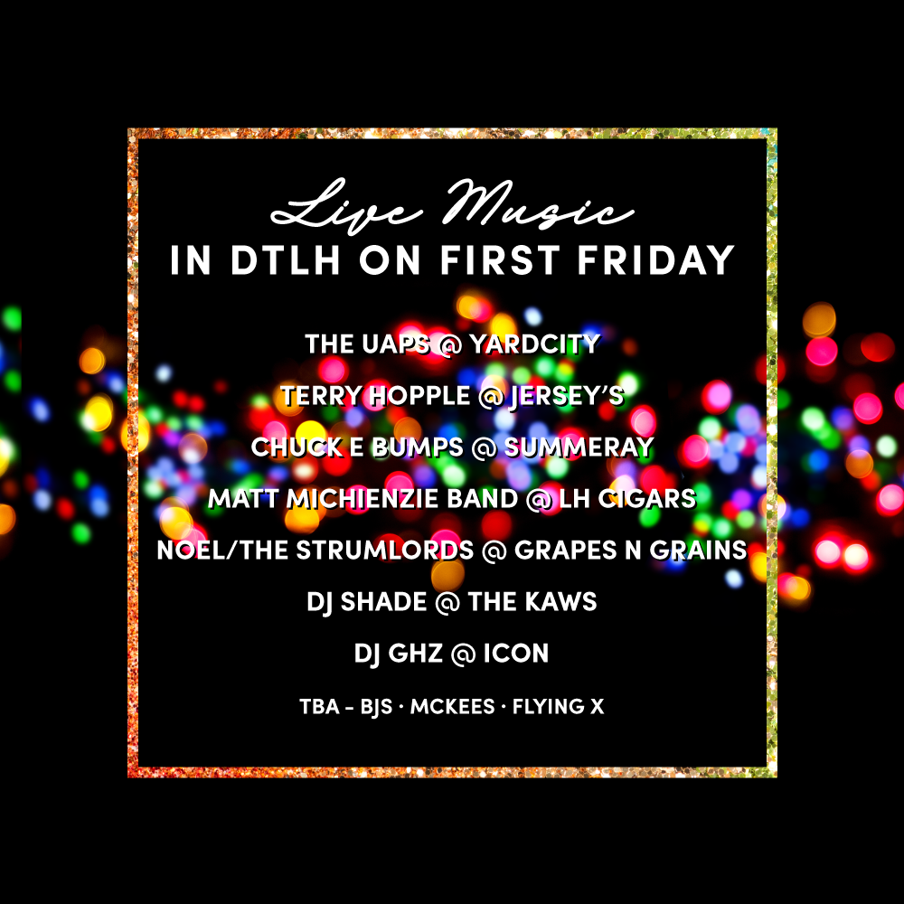 Live Music Lineup for DTLH Your Live Music Line Up along McCulloch for First Friday December 2nd! featuredAymie SpitzerNovember 18, 2022dec Facebook0 Twitter Pinterest0 0 Likes