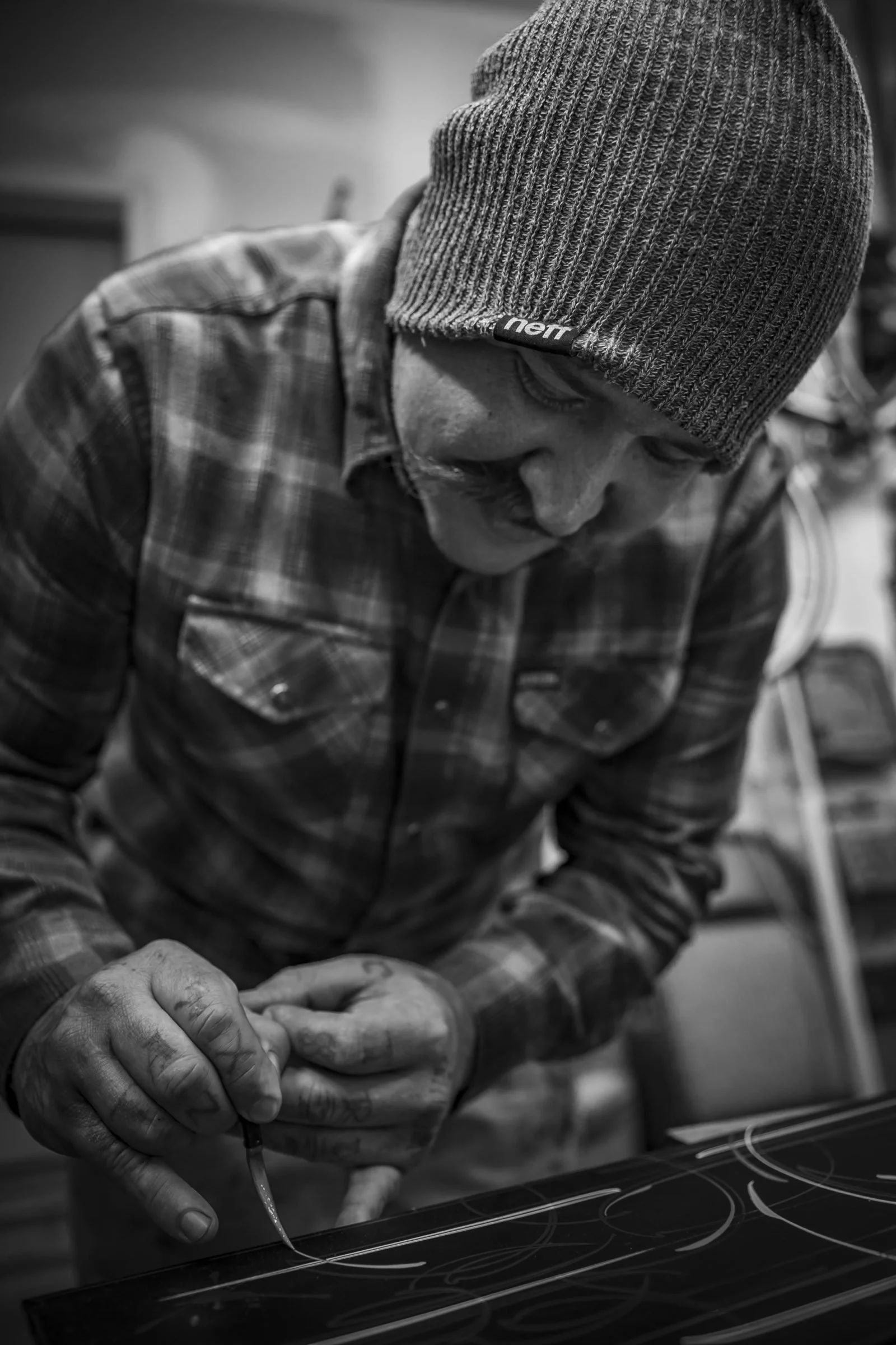 Being a part of the pinstriping & signpainting community has fulfilled my life in many ways; it has helped me connect to people all over the world, it’s allowed me to show art all over the world, and allowed me to hire other creatives from all over the world. It has broadened my mind and allowed me to see things from a much larger perspective in how we all communicate. It’s a very passionate driven industry that I’m proud to be apart of.
